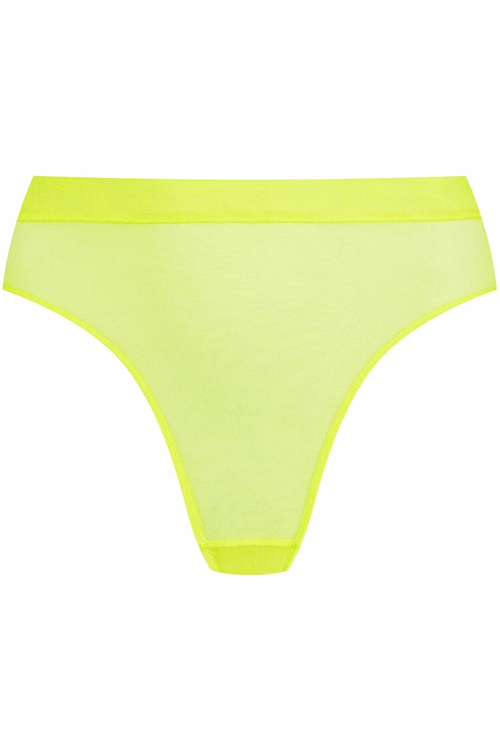 With its clean-cut lines and all-yellow pink palette, the Corps à Corps high waist thong by Maison Close is the very definition of ‘simple yet striking’. Crafted from a slightly iridescent mesh fabric that feels like a second skin this high waist and high leg thong hugs the curves of the body. Pair this sheer high waist thong with the matching Corps à Corps bralette or underwired bra.