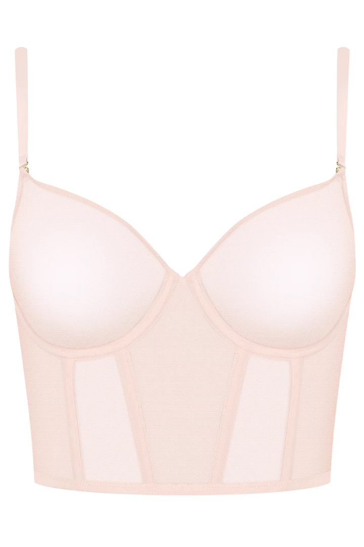 Chic and simple, discover the L’Amoureuse wire bra. Made from pink sheer mesh to perfectly highlight the bust, it has underwired moulded cups and slim, adjustable and interchangeable shoulder straps. Lined mesh on the front and sides creates a contrast of transparency and opacity. Style yours with the matching L’Amoureuse Mini and Suspender Belt for a sexy three-piece lingerie set.