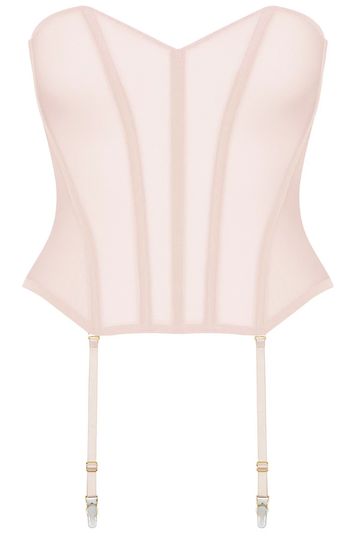 Fearlessly sexy and feminine, the L’Amoureuse Corset is a must-have luxury lingerie staple. Crafted from ultra-sheer pink mesh, it forms your figure with flexible vertical boning. The 4 garters are both adjustable and detachable for your desired fit and look. Pair yours with the matching sheer Stockings and L’Amoureuse Open Brief.