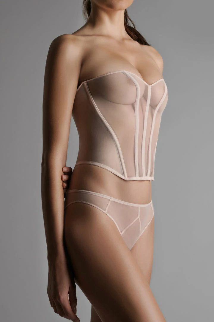 Set someone’s pulse racing in this sexy open brief from Maison Close. Crafted from super sheer mesh in pink, the front features a classic cut, whilst at the back strapping frames an oversized and revealing cutout. For maximum impact, pair with the matching L’Amoureuse Corset or Wire Bra.