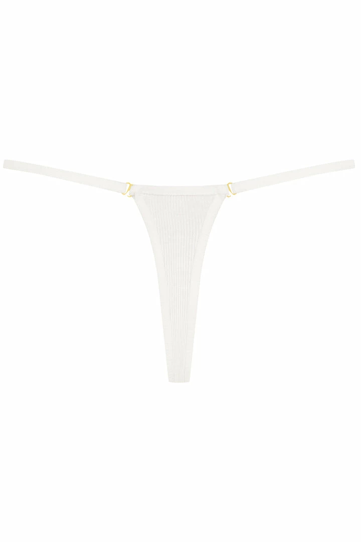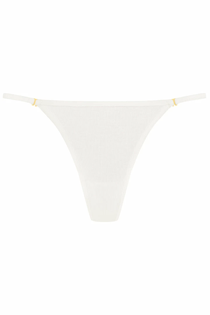 Crafted from supersoft ribbed modal in a luxurious ivory hue with gold-tone hardware, the ‘La Femme Amazone’ mini thong features a low-rise fit and triangular-shaped back. Two thin side straps can be interchangeable with Signature neon straps to create a combination that’s all you.