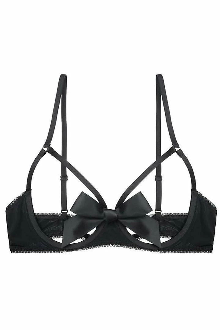 Switch between playful seduction and sensational minimalism with this open cup bra by Maison Close, which features a detachable satin bow between the breasts. Taking its cue from bondage fashion, the underwires and elastic strapping having a framing effect – it’s not the bra that’s the main attraction here, it’s you. Style it with nipple pasties, or wear it alone if you’re feeling daring.