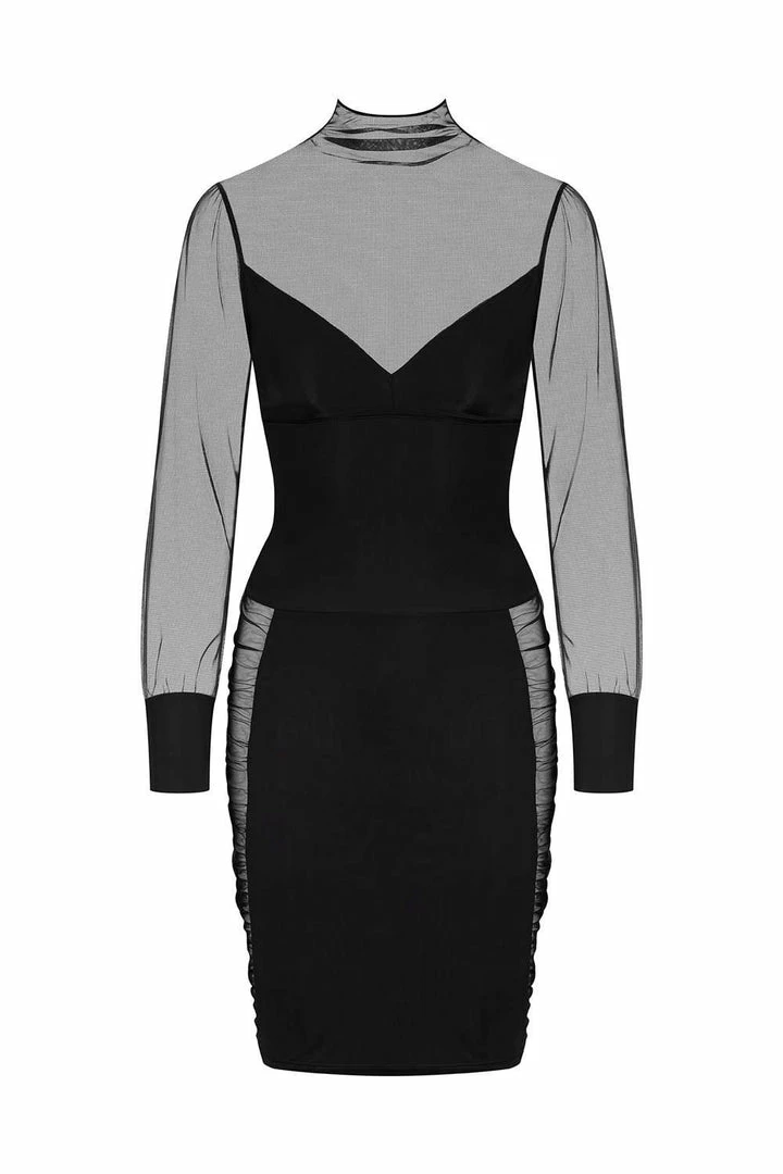 Maison Close’s ‘Madame Rêve’ Maîtresse Dress is both sophisticated and feminine. Crafted from sheer mesh and opaque microfibre, this LBD has everything you need to have all eyes on you. It features a high neckline and is midi-length with transparent tulle to the top and sleeves. Wear yours to seduce at home, or transform it into a real ready-to-wear piece by day.