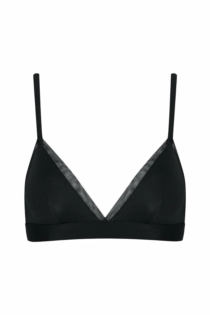 Maison Close’s ‘Madame Rêve’ triangle bra may appear understated from afar, but take a closer look and you’ll see it’s crafted from luxurious soft microfibre and delicate mesh trim. Cut with soft triangle cups, it features bust darts with slim shoulder straps for light support.