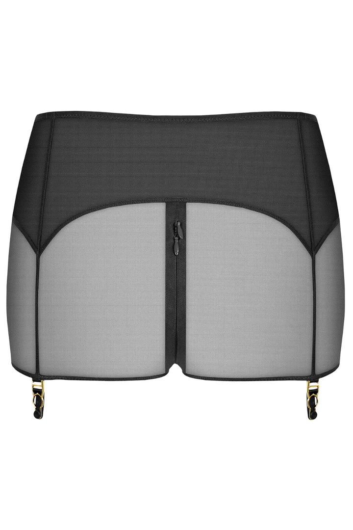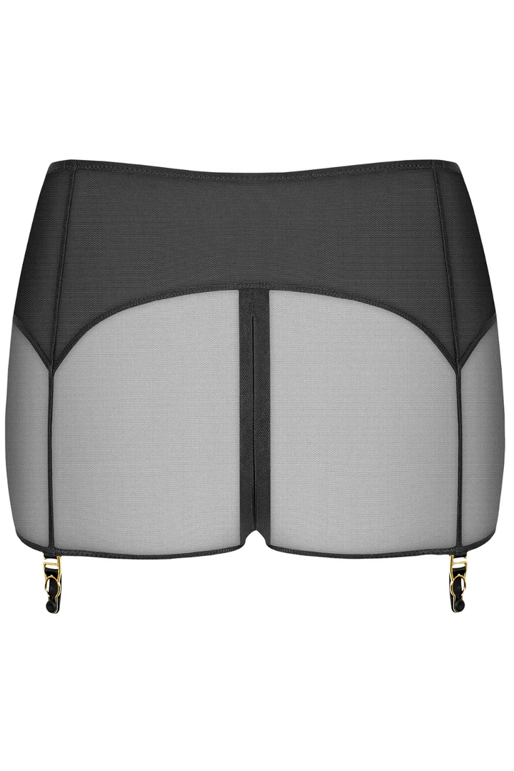 Maison Close’s L’Amoureuse shorty is cut from the collection signature sheer mesh for an irresstibly lustre. Despite its minimalist appearance, it has a unique and spicy feature, a 2-way openable zip at the crotch. The 4 gold-tone garters can be detached for multiple looks. Style yours with the matching sheer Stockings and L’Amoureuse Underwired Bra.