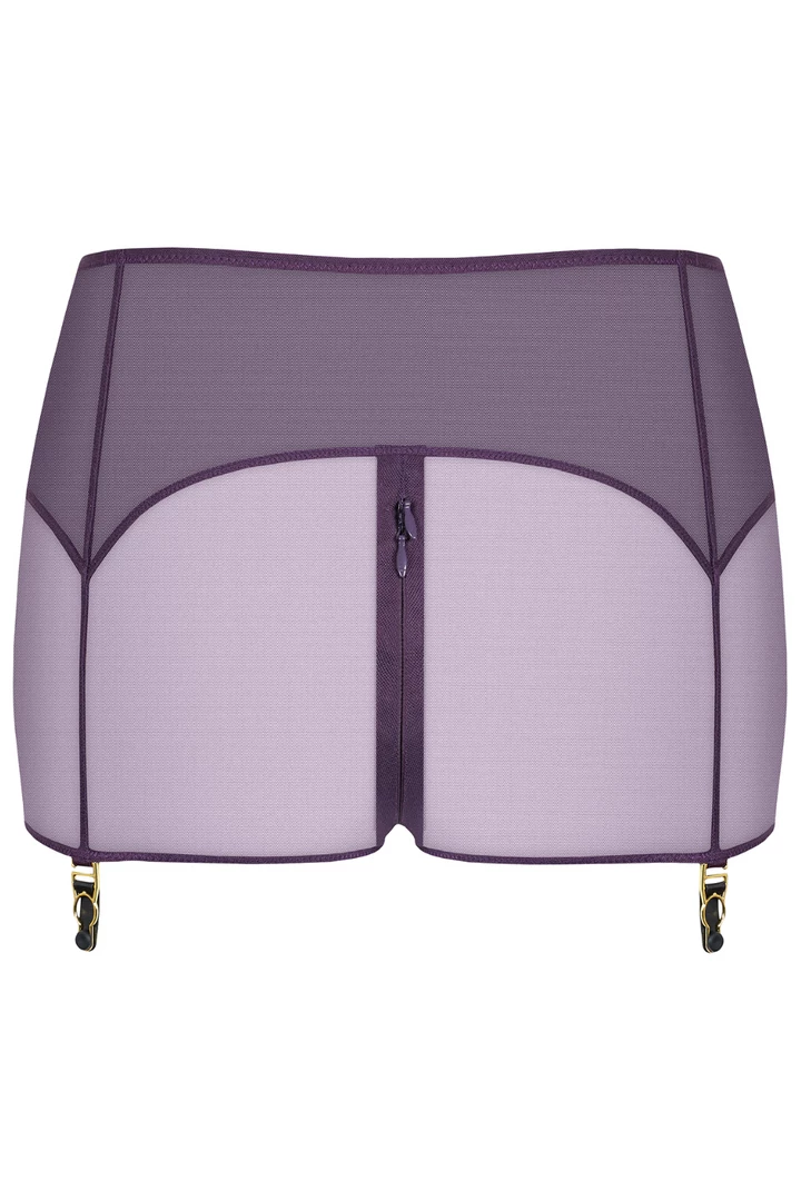 Maison Close’s L’Amoureuse shorty is cut from the collection signature sheer mesh for an irresstibly lustre. Despite its minimalist appearance, it has a unique and spicy feature, a 2-way openable zip at the crotch. The 4 gold-tone garters can be detached for multiple looks. Style yours with the matching sheer Stockings and L’Amoureuse Underwired Bra.