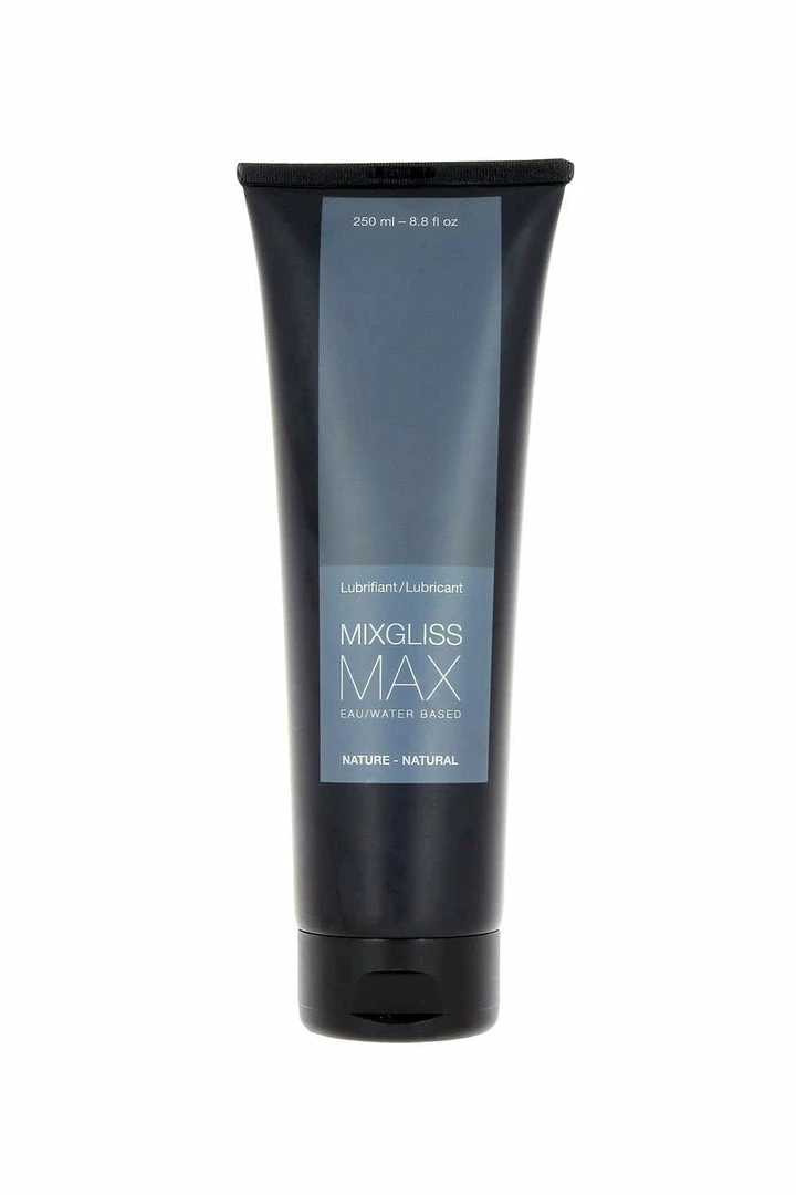 Lubricant from Mixgliss. Mixgliss Max in a water-based and unscented lubricant, extra slippy for new sensations. With Mixgliss Max, you have never been so relaxed! It’s creamy texture and relaxing effect allows for a gentle penetration. Perfect for the use with sextoys, Mixgliss Max brings you to extreme sensations and tremendous orgasms!