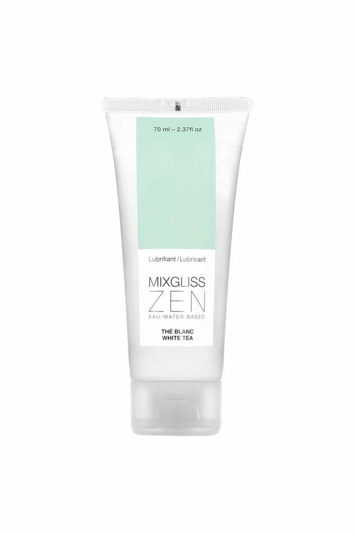 Water-based lubricant from Mixgliss. Mixgliss Zen is an intimate lubricant with hints of white tea. Its creamy formula and its subtle, unique fragrance exalt the harmony of bodies and desires. Fresh and sensual, Mixgliss Zen leads you to unforgettable sensations.