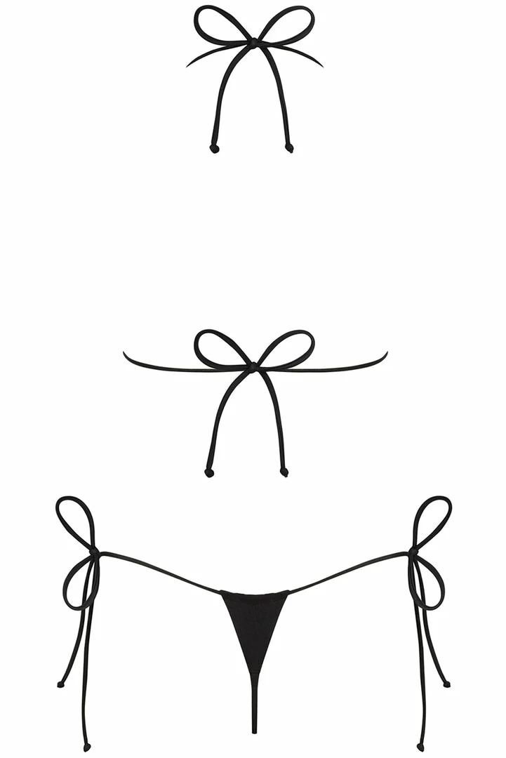 • Bella Vista micro bikini in black: bra and thong included.