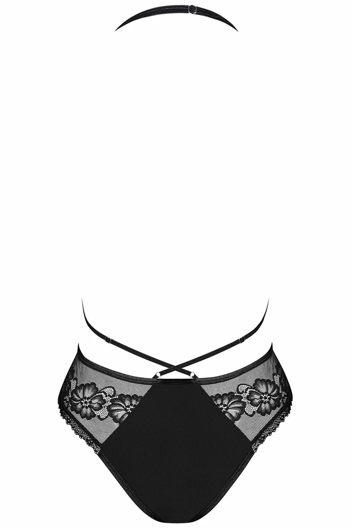 Canndis is an extremely feminine, charming teddy. Thanks to the combination of a classic cut with a very original, deep neckline, you cannot pass by it indifferently. Tempting mesh and lace decorations will make you feel sexy both in the morning and at night. The whole is topped with a shoulder strap and elastic straps crossing the back.
