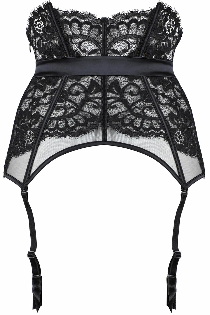 Accenture your feminine curves with the irresistible Marlene suspender by Prelude. This wide four strap suspender belt is crafted from soft black lace, sheer tulle and satin. Black Swarovski Crystals sit on the centre front for added glamour. The four suspenders straps can be adjustable for your desired fit or removed for different looks. Pair yours with the matching Marlene Brief and Triangle Bra for an irresistible romantic look.