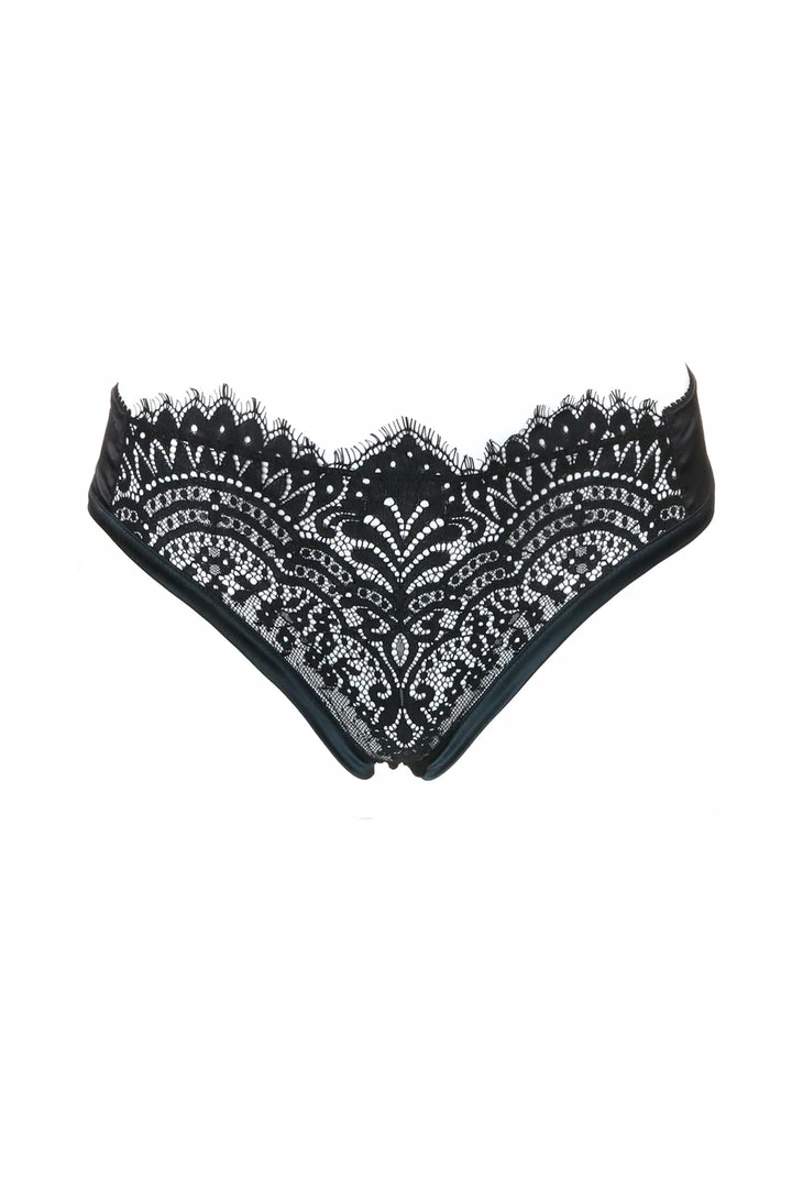 Prelude presents their new AW20 line ‘The Black Swan’, with luxurious materials and sensual cuts this alluring line is both empowering and naturally glamorous. This charming brief crafted from black lace and satin in a classic brief cut. The suggestive transparency allows you to show some skin whilst a small satin bow at the back adds charm.