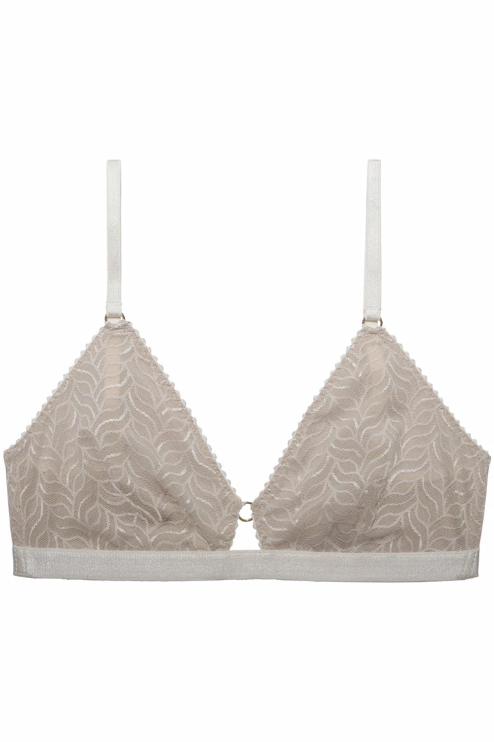Discover the most beautiful combination of summer freshness and softness with the Vivi collection. The soft material features a subtle pattern. The triangular cups feature a small cut out detail with a golden ring in the front.